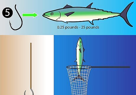 To catch a wide variety of fish, use a small hook. For example, a number five size hook can catch fish from a quarter pound to 25 pounds. However, angling and landing that number 25 fish, when using a small number five hook, requires careful angling and a gaff or a net at landing.