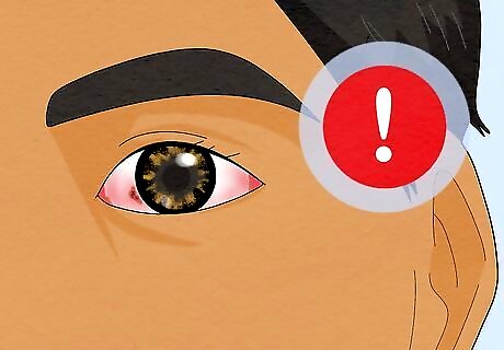 Notice changes in your eyes. Take out your contact lenses and call your doctor if you start to notice signs of eye discomfort or distress. If your eyes start to hurt, itch, or become red and watery, you may have an eye infection or injury. If your eyes may become overly sensitive to light, or you have blurry vision, call your doctor. Your eye may feel scratchy, as if there's something stuck in it. This can be an indication of a scratch on your cornea. Always start by taking your contact out when you notice these signs.