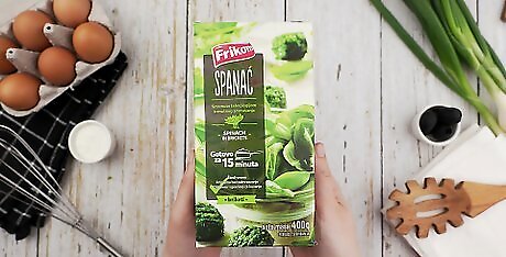 Find healthy frozen foods. The frozen aisle can be a great place to find quick and easy healthy foods if you know what to look for. Read the nutrition labels of foods to understand how much fat, salt, and sugar it contains as well as how many calories there are per serving. You can buy frozen ravioli and jarred marinara sauce. Heat both up, and eat a salad on the side. Frozen vegetables will often come already cut or sliced. You can add frozen vegetables to a stir-fry, marinara sauce, or scrambled eggs.