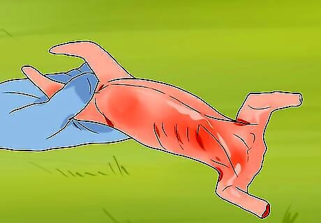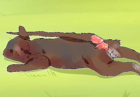 Flip the carcass over and peel the hide off the belly to the back feet. Standing on the tail, use your fingers to peel off the hide. Stop peeling when you reach the joints right above the back feet. The skin should peel right off, but if you have any trouble, you can use your knife to gently separate the skin from the belly.