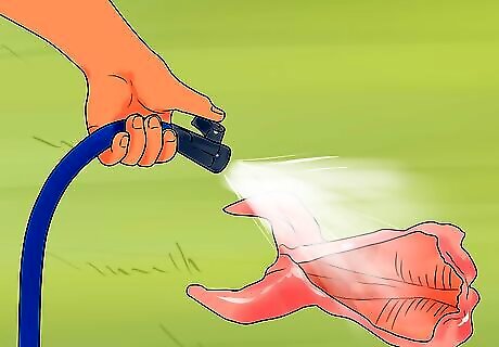 Wash out the body cavity if you have access to fresh water. Use a hose to thoroughly rinse the outside and inside of your cleaned squirrel. Make sure to cover the entire carcass with water. A few seconds of rinsing with a running hose should suffice.