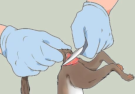 Make a 1 ⁄2 in (3.8 cm) horizontal cut through the base of the tailbone. Use a pocket knife, small paring knife, or other small, sharp knife. Lift the tail with one hand and make the incision with the other. The cut should be just deep enough to get under the skin. The base of the tailbone is just above the squirrel’s anus. Be careful not to cut into the hide on top of the rump or sever the tail. You’ll want to keep the tail attached to the skin to simplify the following steps.
