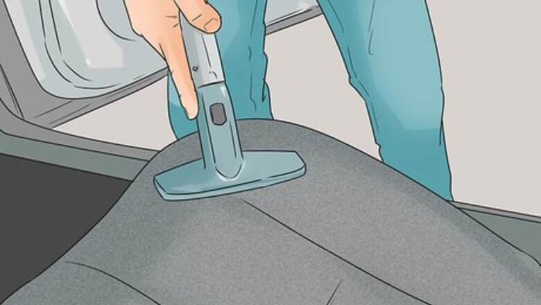Vacuum the seats. Before you clean your cloth seats, you need to remove all debris, dirt, and crumbs. Vacuum the seats well. Make sure to get into the seams. Use your fingers to separate the seams and stick the nozzle of the vacuum into the seams to remove any loose debris.