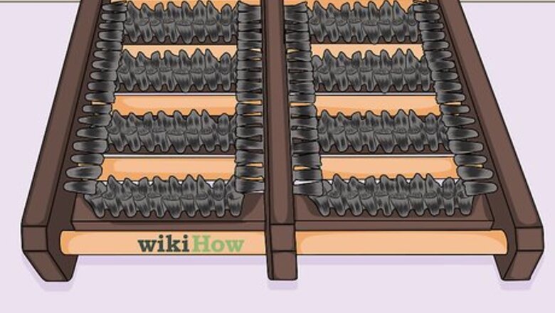 Buy a boot cleaning doormat. Be sure to remove excess dirt and debris from the bottom of your combat boots by purchasing a doormat designed for cleaning the underside of boots and shoes. Different models of this kind of mat are available with bristles, rubber spikes, or grooves. Look for one at local hardware stores, department stores, or online. For instance, the JobSite Boot Scrubber Brush Mat, available online for approximately $17, is a door mat with a wood and plastic base and solid bristles to remove mud and dirt from boots and shoes.