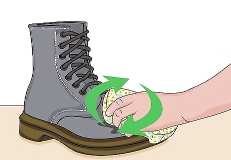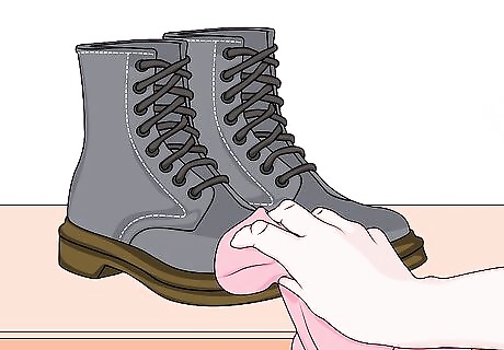 Wipe down your boots with a dry cloth. After removing your boots for the day, wipe them down with a soft, dry cloth to remove dust and dirt. A micro-fibre cleaning cloth is the best bet for this daily maintenance. Focus on the surface of the boots as well as the seams.