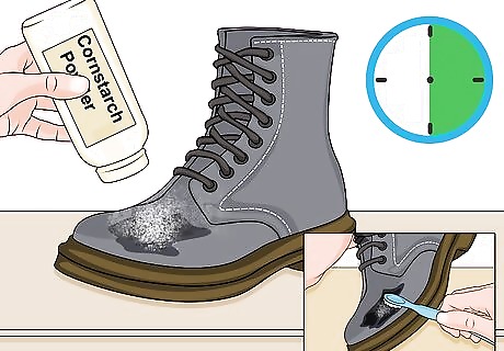 Treat oil stains with baby powder. Use baby powder to treat hard-to-remove oil stains. Apply the powder to the stain generously. Let it sit for 30 minutes to absorb the stain, then brush off your boots. Corn starch and baking soda can also be used to absorb oil stains.