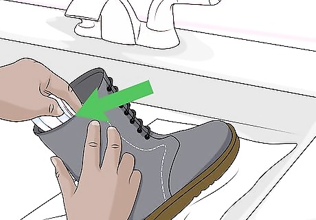 Dry your boots. Allow boots to air dry naturally. If possible, clean them at night allow them to dry completely overnight. Avoid drying boots near a heat source (e.g. heating vent) as the materials can warp.