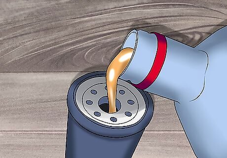 Re oil the filter. After the air filter has dried, you will need to re oil it so it can work properly. Apply filter oil to the filter. Follow the estimated amount of oil for your filter type on the label. Let the filter oil absorb into the filter for five to ten minutes. You can find filter oil online or at your local autobody shop. Some cleaning kits for air filters come with filter oil.