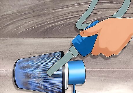Vacuum the filter. Hold the filter with one hand and use the hose attachment on the vacuum to remove dirt and dust. Run the vacuum over the filter to suck up all the residue on the filter. You can also do a quick vacuum of the filter housing to remove any dirt or dust.