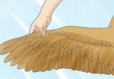 Stretch a wing out and expose the flight feathers. Flight feathers are the longest wing feathers, and look the most like the traditional "feather" you might see in a picture or drawing. They're also sometimes a slightly different color than the other feathers. The feathers you'll clip are the first ten, which are the longest feathers and are used for taking off. It helps to have a partner hold while you clip, or vice versa.