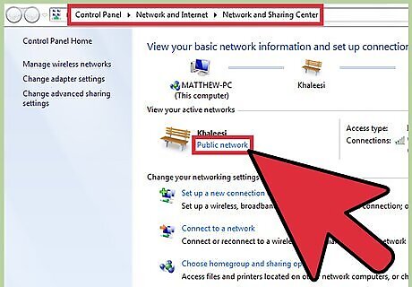 Tell Windows that you are using a public network. If you're using Windows Vista or a newer OS, the Windows Firewall has been set up so that it will ask you what type of network you are using. Make sure to specify that it's public, so the computer can adjust your settings accordingly. On Windows, you must go to your Control Panel and select "Network and Internet" then select "Network and Sharing Center". Find and click the network you need to connect to and select "Public network." On Macs, you can find these settings in your System Preferences by clicking "Network" then "Advanced" then "TCP/IP." Mobile devices should find them in their settings by clicking "Wi-Fi" then "Info" then "Configure DNS", although each operating system differs slightly in what they call these buttons. If you use a firewall outside of Windows, make sure you select its settings for a public-network, too.