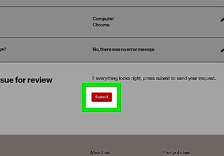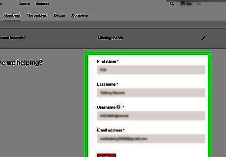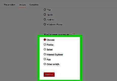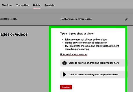 Write your message in the contact form. Enter a subject and description and choose the correct option from the issue-specific dropdown underneath the form. Click “Continue” at the bottom of the contact form when you’re done. For example, if you are filling out the contact form for an issue related to notifications, there will be a dropdown menu asking you what kind of notifications you are having issues with.