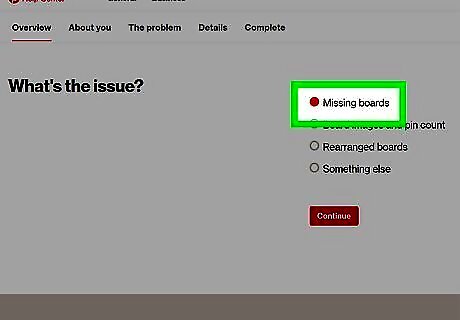 Provide additional details about your issue. The next page will ask you for more information about your specific issue. Choose the options that best match the reason you are contacting Pinterest and click “Continue.” For instance, you might need to provide details about what device you are using Pinterest on.