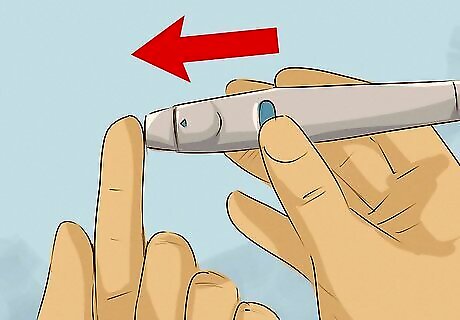 Test your blood sugar with a blood sugar meter. To test your blood sugar, begin by washing your hands. You're creating a small puncture wound, so you want to be as clean as possible! Turn your meter on and insert a test strip if that's how your meter works. Use the lancet to puncture the side of your fingertip, drawing up a drop of blood. Place the drop on the test strip and wait for your meter to read it. You can squeeze your finger a bit if you're not getting enough blood. Some older meters require that you put the blood on the strip before inserting it into the meter. Typically, you want your results to be 70 mg/dl to 100 mg/dl before a meal and under 140 mg/dl after a meal. However, talk to your doctor about your target range.