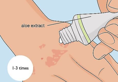 Try applying aloe extract if you have inflamed and scaly skin. Aloe has natural soothing and healing properties, so it may work to alleviate your psoriasis. Buy either pure aloe gel or a moisturizing lotion that contains aloe extract. Rub the aloe into the irritated patch of skin and work it in until it’s clear. You can apply the aloe extract 3–4 times daily for up to 1 month, or until you see improvement. You can find aloe extract online or at your local drugstore.