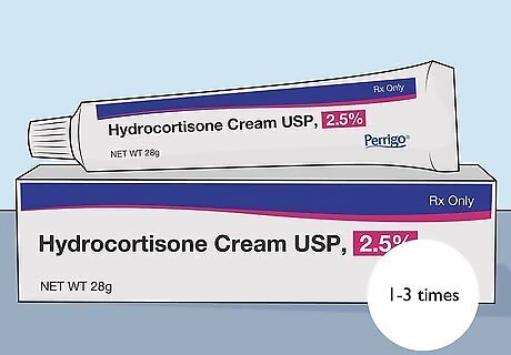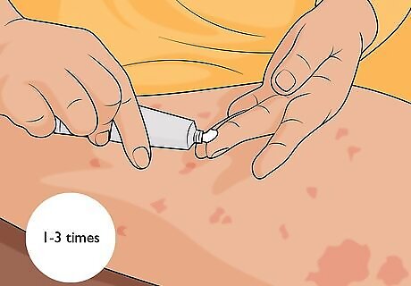 Use over-the-counter hydrocortisone when you feel itchy. Put a fingertip-sized amount of hydrocortisone on your skin and start rubbing it into the patch of skin that itches. Massage the ointment into your skin until it completely absorbs to start feeling relief. Apply the ointment 1–4 times every day around the same time to help keep your psoriasis under control. You can buy hydrocortisone from your local pharmacy. Hydrocortisone is a type of corticosteroid, which helps reduce redness, swelling, and itchiness. If you get a severe rash or your condition worsens, stop using hydrocortisone and contact your doctor.