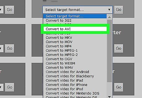 Select Convert to AVI. This option will allow you to upload your JPG file, and convert it to AVI.