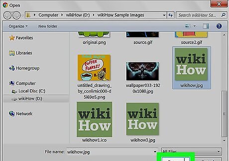 Select the JPG file you want to convert. Find the JPG file you want to convert to AVI in the file navigator window, and click it.