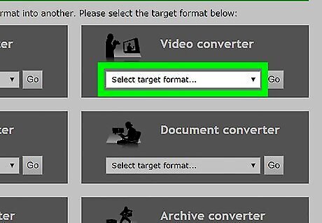 Click the selector bar below the "Video converter" heading. The selector bar is labeled "Select target format." It will open a drop-down menu of all the available video formats.