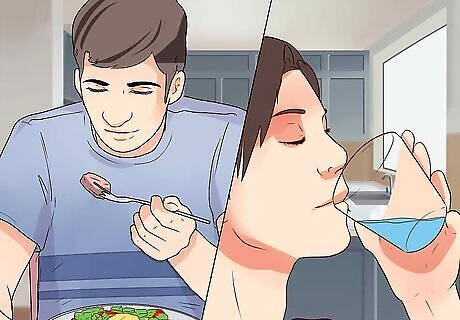 Adopt healthy habits. It is important to try to be as healthy as possible when you are dealing with cancer. Your body needs plenty of nutrients to fight your illness. Try to eat a healthy diet. A balanced diet can help you fight fatigue. Try to eat whole grains, plenty of fruits and vegetables, and lean proteins. If you are having trouble keeping foods down, try eating some homemade vegetable soup. You'll get lots of nutrients and hopefully avoid upsetting your stomach. Remember to stay hydrated. Cancer medications can cause dry mouth and cracked skin, so it is important to drink as much water as possible. Get plenty of rest. Allow yourself to take naps as needed and go to bed as early as you like. Average adults need 7-9 hours of sleep. You may need more.