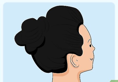 Wear your hair in a messy bun with lifted roots. Since your grays will be most obvious when your hair is slicked-back, try applying a root-volumizing spray or powder to your roots. Then, wrap your hair into a messy bun and use pins or an elastic to hold your hair in place. You can even add a small braid to draw more attention away from any grays. If you want to wear your hair down, wear it in curls or part it in a different place than you normally do to disguise gray hairs.