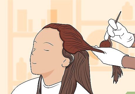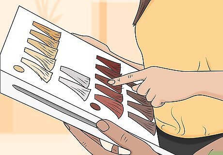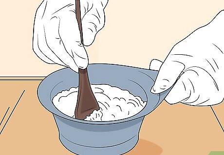 Mix the dye in a bowl according to the package directions. Typically, dye comes with a bottle of dye and a packet of developer, and you mix the two together. The package instructions may tell you to mix the product in the bottle and apply with an applicator tip, but if you plan to use a brush, mix the products in a glass or ceramic bowl, instead.Don't want to use chemical dyes? Try natural hair dyes, such as coffee or tea for dark hair, or henna or hibiscus powder for red hair.