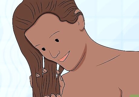 Condition your hair, then rinse it again. Most hair dye kits come with a nourishing conditioner designed to replace some of the moisture lost during the dyeing process. If your kit doesn't have a conditioner, apply a thick layer of your regular conditioner to your hair. After 3-5 minutes, rinse your hair thoroughly. Avoid shampooing your hair for at least 48 hours after you color your hair. This will allow some of the natural oils to build back up on your scalp.