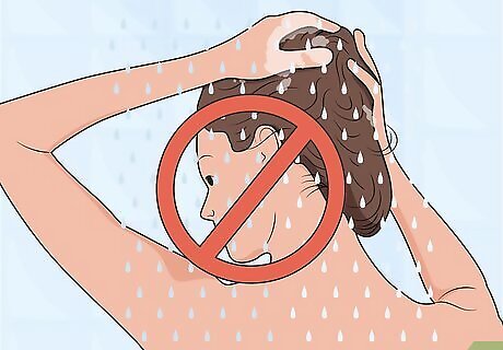 Skip washing your hair for 1-2 days before you color it. Most semi-permanent dyes, including products developed to cover grays, work best on unwashed hair. That's because the natural oils from your scalp will help protect your skin and hair during the chemical process. During this time, avoid using styling products like hairspray, dry shampoo, or gel to ensure there's no buildup that will prevent the color from spreading evenly.
