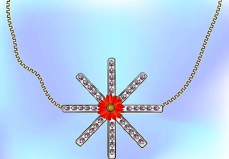 Lay one strip across another, forming a cross. add another strip on top of them diagonally, and then another the opposite diagonal direction. You should end up with an asterisk shaped star (*). This is you necklace base!