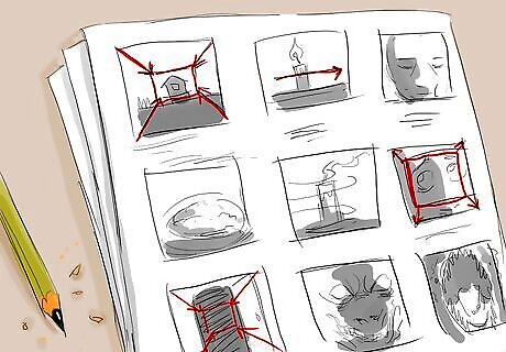 Create a storyboard. Using your outline and script, create a storyboard of your film. The storyboard includes sketches of each scene, with detailed descriptions underneath the sketch. It is a visual representation of your outline. You can also include pieces of script in the details under your sketches. For a 30-second PSA film, you should have about four to six sketches on your storyboard.