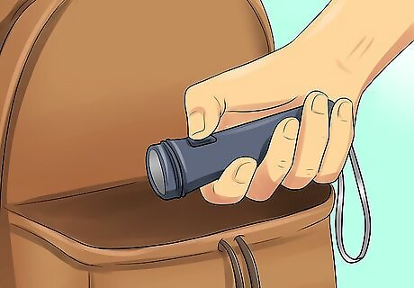 Make sure to pack a flashlight. In the event of a power outage, it's important you're able to see. This can help prevent injury and guide others to safety. Pack a flashlight in your survival kit. If space is an issue, you can pack a small flashlight. Some flashlights are even sold as keychains.