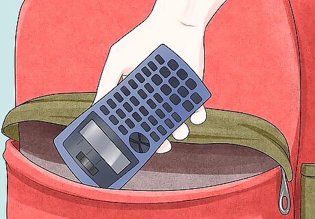 Pack a calculator. A calculator is a great tool to have for high school, especially if you're taking high level math classes. Make sure it's the type of calculator you need for your course. High level courses may require that you use graphing calculators. Refer to your syllabus if a specific type of calculator is required and make sure that's the one you have. Texas Instrument calculators, such as the TI-83 and TI-84, are frequently used for high school math courses. However, your school may require a different brand, like Hawlett-Packard (HP) calculators.