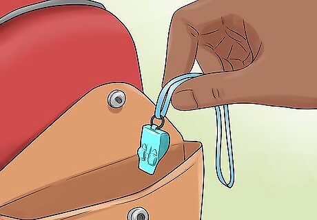 Pack an emergency whistle. If you're in danger at any point during the school day, an emergency whistle can alert others you need help. Pack a loud, shrill whistle in your survival kit. If you're in danger, you can blow the whistle for help. Opt for a whistle with a string tied around it. If you're going anywhere alone, you can take the whistle out and hang it around your neck. If your school allows it, you can also pack pepper spray for an emergency.