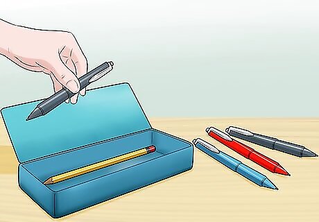 Pack writing utensils. It's always a good idea to have extra pens and pencils on hand. Make sure to pack these items in your survival kit. In addition to pens and pencils, get sharpies, red pens, highlighters, and other utensils you write with during class. If you use mechanical pencils, make sure to pack extra lead. You should also pack a small pencil sharpener. You can pack some fun, decorative pens or pencils too for writing notes to your friends or doodling during lunch time. Add something like colorful gel pens, colored pencils, or markers.