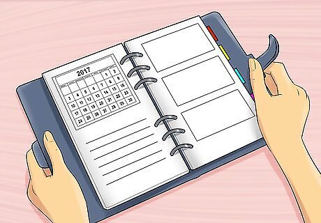 Add an agenda or planner. An agenda or planner is a must have for a school survival kit. This will help you keep track of homework, tests, quizzes, and other deadlines. You can buy an agenda or planner at a local department store before school starts. Have some fun selecting your planner. Pick one that uses colors and designs you like.