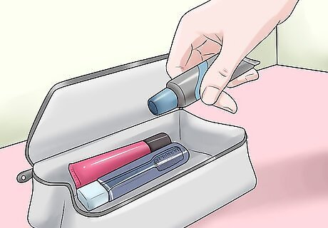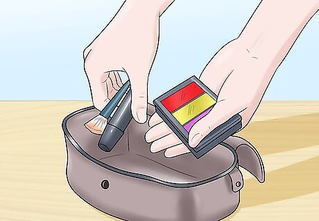 Pack any makeup you use. If you wear makeup, you may need to touch it up at some point during school. Keep makeup in a small, sealable container and put this in your survival kit. You should also pack any brushes or other instruments you use to apply makeup. Make sure to close containers of things like lipstick, lipgloss, and foundation carefully. You do not want such items to spill in your kit. If your lips get dry, add chapstick as well. Add a compact mirror as well as you can use that while touching up your makeup.