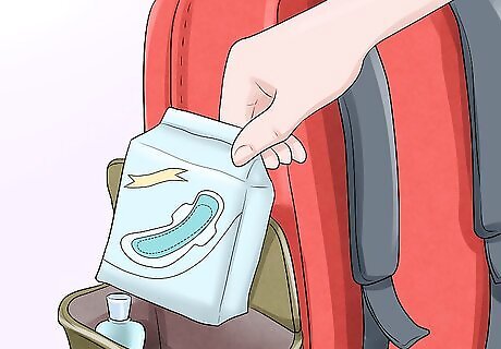 Make sure to include period products. If you have your period at school, you want to be prepared. Always have tampons, pads, or any other period product packed in your survival kit. In the event of a leak, it's a good idea to have a spare pair of underwear. You can roll up your underwear and keep them in a discreet pocket of your survival kit or somewhere in your backpack. You also may want to carry painkillers if you end up with menstrual cramps at school.