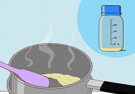 Add water to a double boiler and heat until boiling. Don’t overfill the pan: you only need a few inches of water. You just need enough water to create some steam. If you don’t have a double boiler, use a saucepan with a slightly smaller frying pan over top. You'll be adding your breastmilk to the pan in a bit, and it's important that the milk isn’t sitting directly on the heating element, as this could cause it to burn.