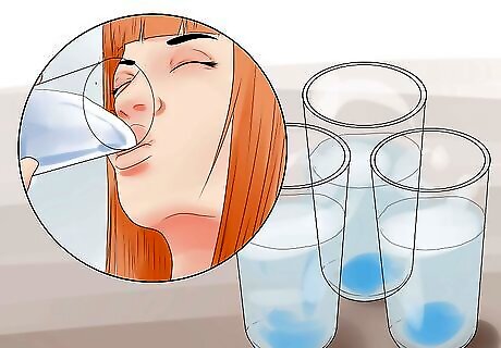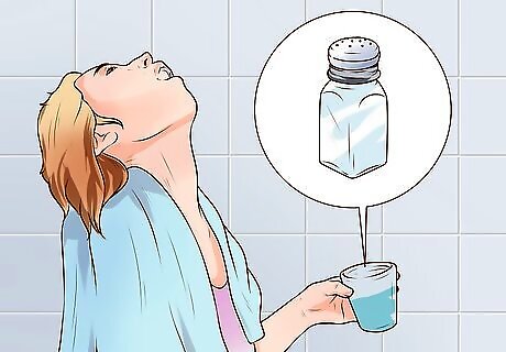 Gargle with salt water. Simply gargling with salt water can sometimes alleviate the symptoms of a sore throat. Salt water mixed with warm water can be soothing to the back of the throat. Mix a cup of lukewarm water with about a tablespoon of salt. Mix the salt in until it's dissolved and the water looks milky. Gargle with the salt water about 30 seconds and then spit into the sink. Repeat as needed as symptoms persist.