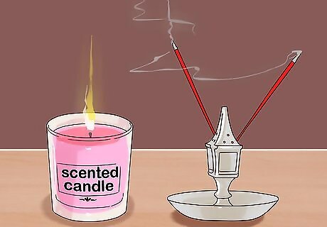 Light a scented candle or incense to boost your mood. Empaths are highly sensitive to different sensations, such as smell. Improve your mood and relax by adding scents to your environment that help center you. This can also counter any strong or aversive smells that unsettle or distract you.