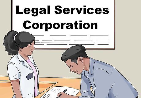 Apply for federally-funded legal aid services. There is a large network nationwide of legal aid programs that receive funding through the Legal Services Corporation, which is an office of the federal government. These offices employ lawyers and paralegals to offer free legal advice and services for eligible individuals in certain types of cases, including divorces, employment disputes, landlord and tenant issues, and the denial of public benefits. In order to be eligible for free services, your household income typically must fall beneath a certain amount. Most LSC-funded programs use the federal poverty guidelines in order to determine if you qualify for free legal services. For more information on whether your household income falls under the federal poverty guidelines, click here. You can use a search tool on the LSC website to find legal aid programs in your state. You also can ask for contact information at your local courthouse, your local bar association, or you can look in the phone book under legal services or legal aid.