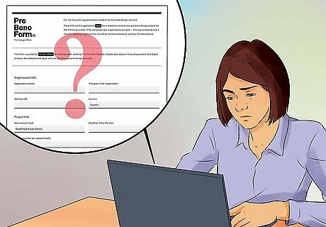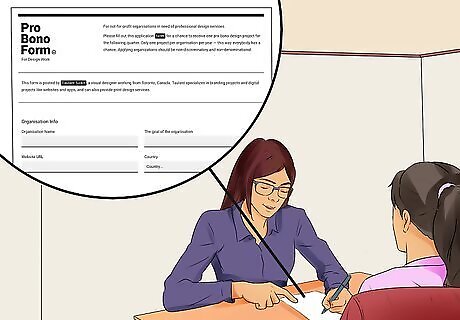 Apply for free legal help through your state or local pro bono program. Many state and local bar associations sponsor pro bono programs, which match volunteer lawyers with people who qualify for free legal advice and representation. Some nonprofit organizations also offer free legal services. You may have to prove that your household income falls under the federal poverty guidelines or another set of income guidelines in order to be eligible for free legal services. You can look online for local or state pro bono organizations that serve your area. Your local bar association and your local courthouse are both likely to have contact information about local pro bono programs.