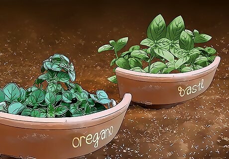 Turn broken flower pot pieces into plant markers. Shattered a pot? Don't throw away the pieces. Use a permanent marker or vinyl letter stickers to label the pot pieces with the names of the plants in your garden. Then stick the piece securely in the ground by the correct plant. If you want them to stand higher up, attach a wire stake to the back of the pot piece. Make it as tall or as short as you'd like. Another option is to use whole flower pots. Simply flip them upside down, write the name of the plant, and set the pot in the soil.