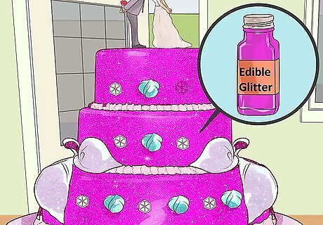 Hide imperfections with edible glitter. Edible glitter is relatively inexpensive and can create a magical glow in your cake. This glow can camouflage small imperfections, like bumps that may have formed in your icing.