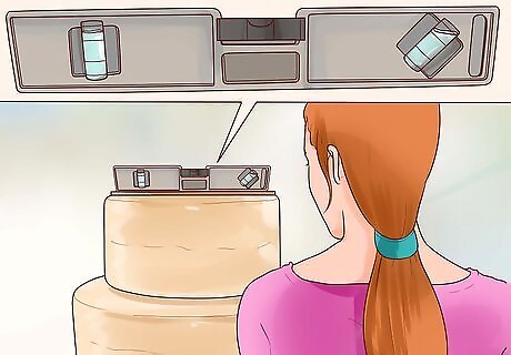 Check the levelness of your cake. An uneven cake will become obvious when on display in the center of attention. Many cake experts keep a small carpenter's level in their cake-making kit for just this purpose. When your cake is firm and cooled: Lay a clean piece of cardboard atop the cake and check its flatness with your level.