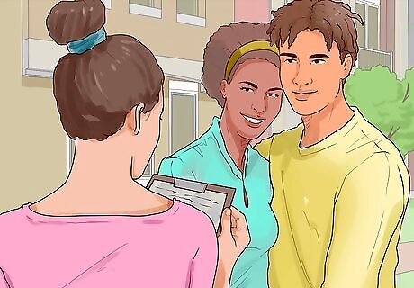 Interview the bride and groom. The lucky couple may have some very specific features they expect in their wedding cake, so you should ask about color preferences, wedding theme, floral arrangements, and venue. All of these tidbits can help you imagine the ideal cake for their wedding and decorate it to perfection. Consider including flowers the bride and groom plan on using in their floral arrangements as decorations for your cake. Remember to ask how many guests will be attending the wedding; this will influence many of your cake decorating decisions, including the number and size of its layers.