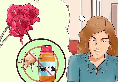 Decorate with flowers. You'll want to be sure that the flowers you use for decorating your cake are pesticide-free and non-toxic flower. You can find these at a local florist or an organic garden, though you may want to inform the florist your purposes for the flowers. Inspect your flowers carefully before adding any to your cake. Small bugs will likely be attracted to the sugar in your frosting and can ruin its appearance.