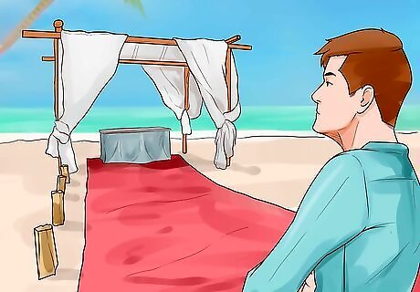 Tour the venue location. This will give you a sense for the kind of wedding that will be held, along with other important information, like whether the location will be temperature controlled. Summer weddings that are held outdoors are not the ideal place for cream based frosting, like buttercream, which can spoil easily in the sun. You might try coating your buttercream frosting with a layer of fondant to help preserve it from spoiling. Buttercream under your fondant has the added bonus of providing a buffer layer between any bumps in your cake and the outer frosting. This means your frosting will look smooth and even.