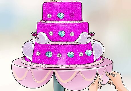 Decide between supports or a stand. This also might depend on the bride and groom's preference, but if you are planning on a multi-tier cake you'll need to support the tires somehow. Typically, this is either done either with dowels/drinking straws that have been cut to size as supports, or on a tiered cake stand. A cake stand might be the best option for beginning decorators, as it will be more stable and not in danger of collapsing on itself.
