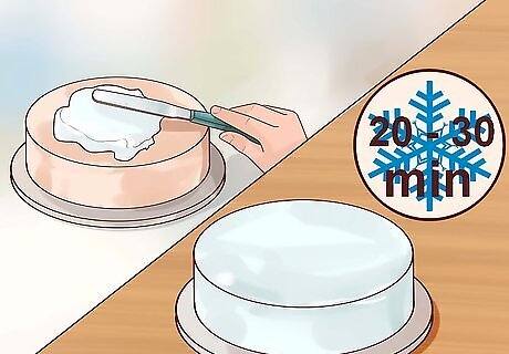 Frost your cake. Your external layer doesn't need to be thick and pillowy, but it should be even and smooth. Begin at the top and using small applications of frosting, smooth your frosting over your crumb coat evenly. Allow your frosting to rest and firm up after you have finishing by putting it in a refrigerator for about 20 - 30 minutes.